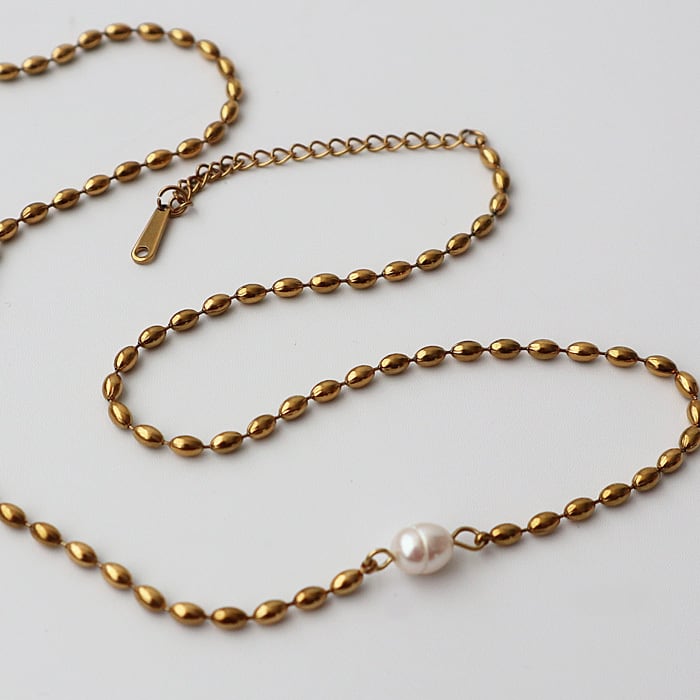 淡水パールのワンポイントが上品な印象のボールチェーンネックレス。 ぷっくりとしたボリューム感のあるチェーンで大人可愛いデザインです。 アジャスター付きでサイズ調整可能◎普 段使いはもちろん、オケージョンやパーティーにもオススメです。