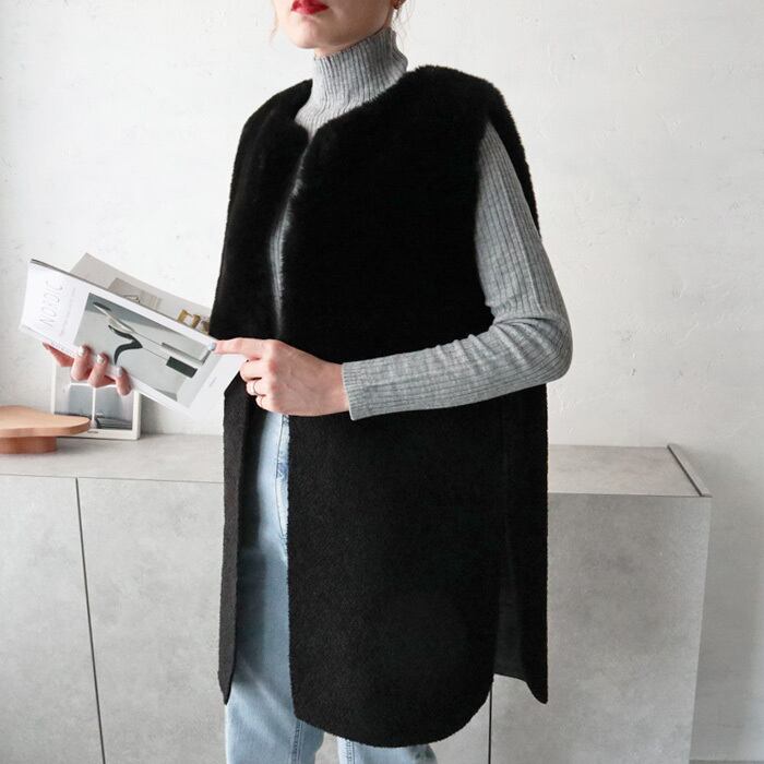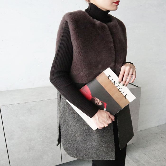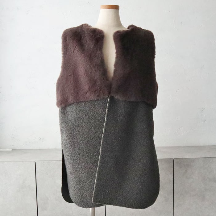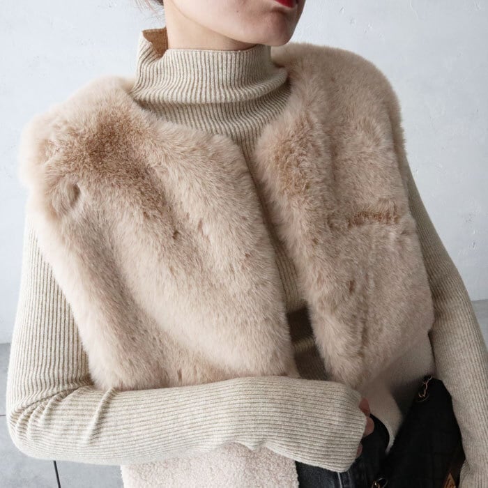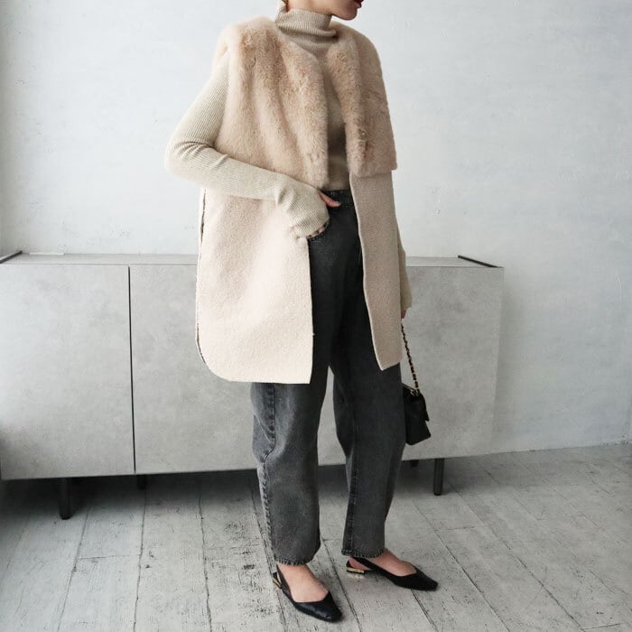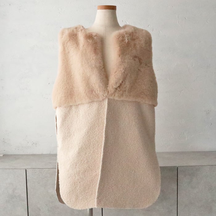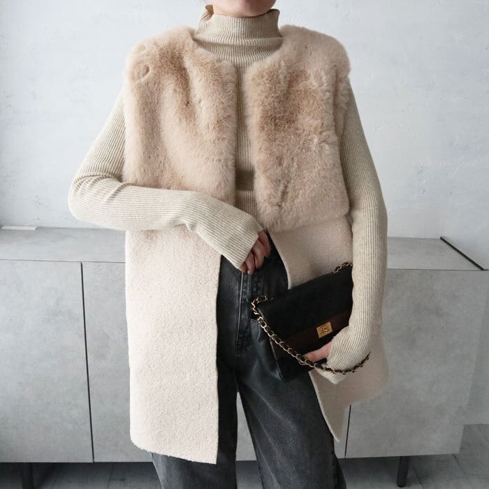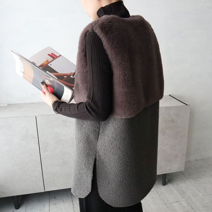昨年大人気だった、フェイクファー×ボアの異素材切替デザインが1枚でサマになるベストが再販!