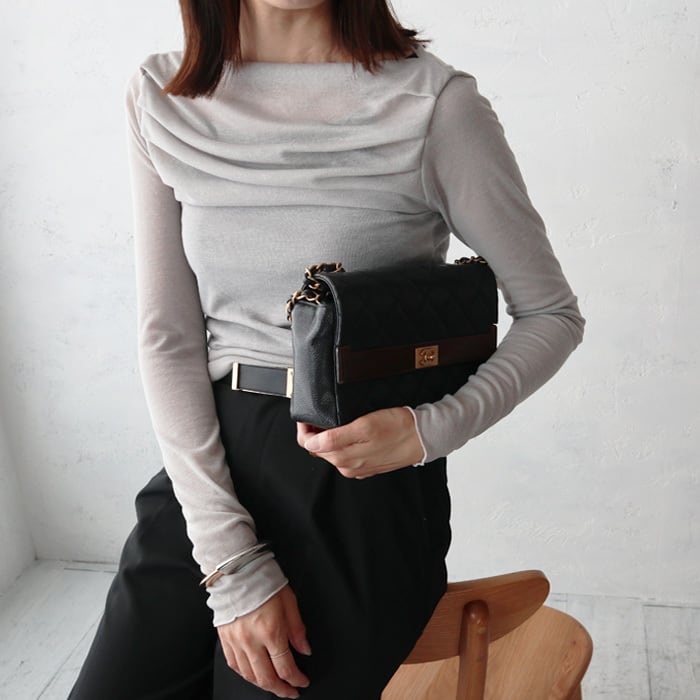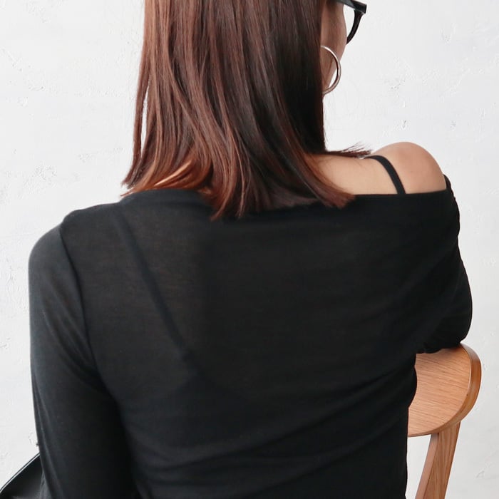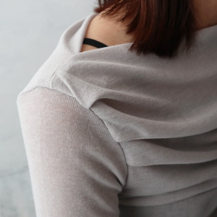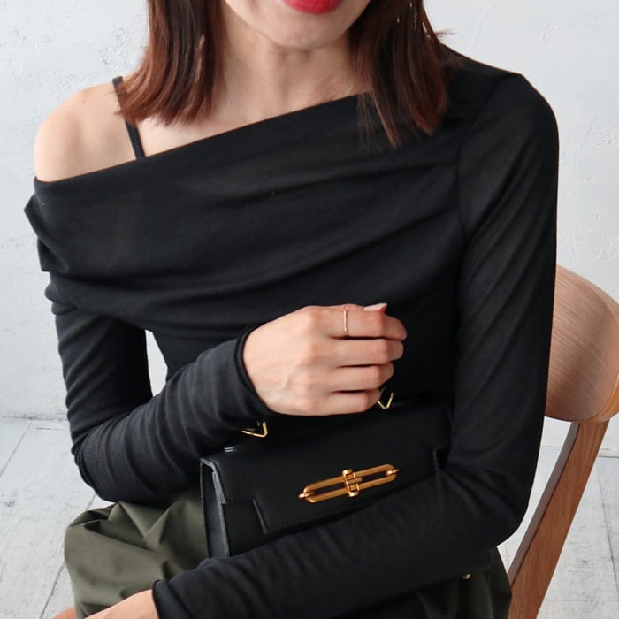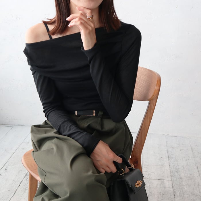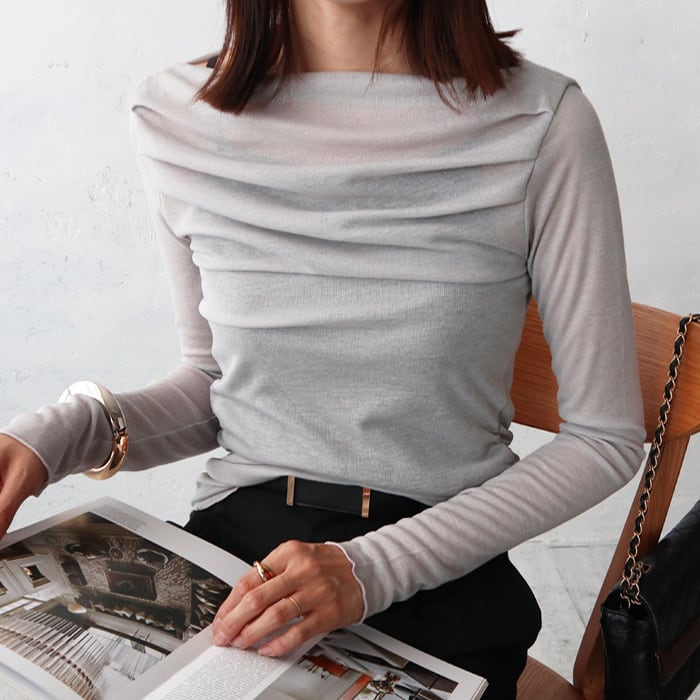 立体感的なタックデザインと、サイドのドレープデザインが魅力的なシアープルーオーバー。 プルオーバーとしてはもちろん、ワンショルダー・オフショルダーと3WAYの着方ができる着回し力抜群のアイテムです◎ また、デコルテラインもきれいに見せてくれるので、コーデに女性らしさをプラスしてくれます。 シンプルなデザインでボトムス次第で印象を変えて頂けます。
