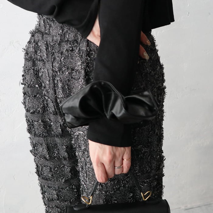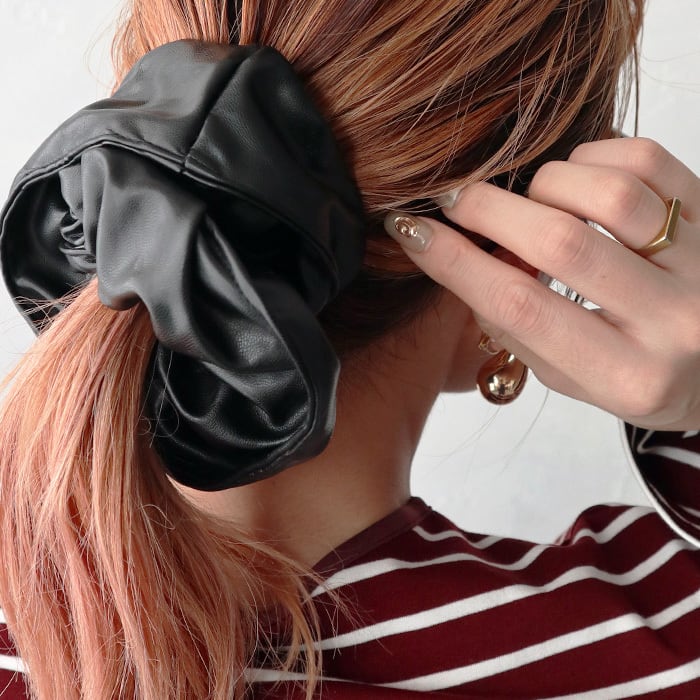 秋の立ち上がりに取り入れたい、レザーLOOKな素材が上品でクラシカルな雰囲気のシュシュ。