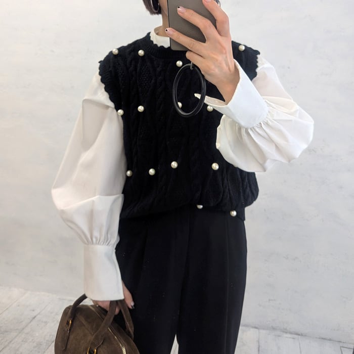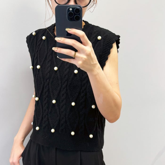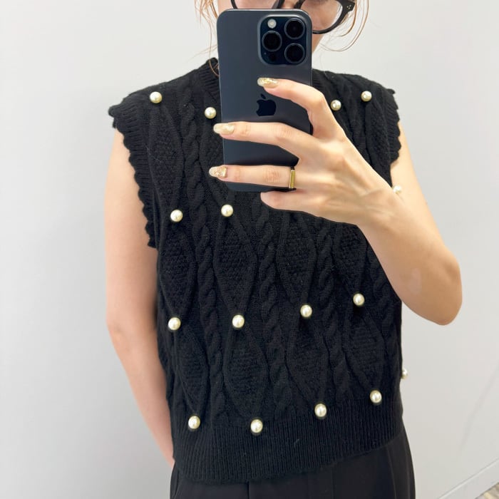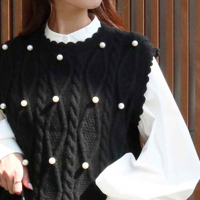 ふんわり柔らかい風合いのケーブル編みニットベスト。
