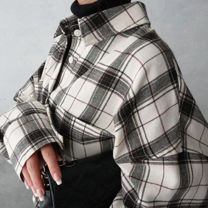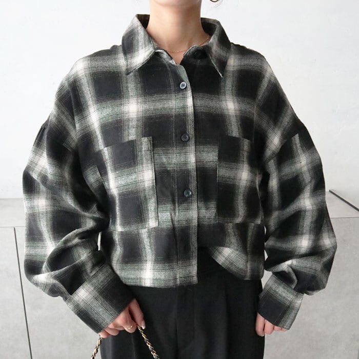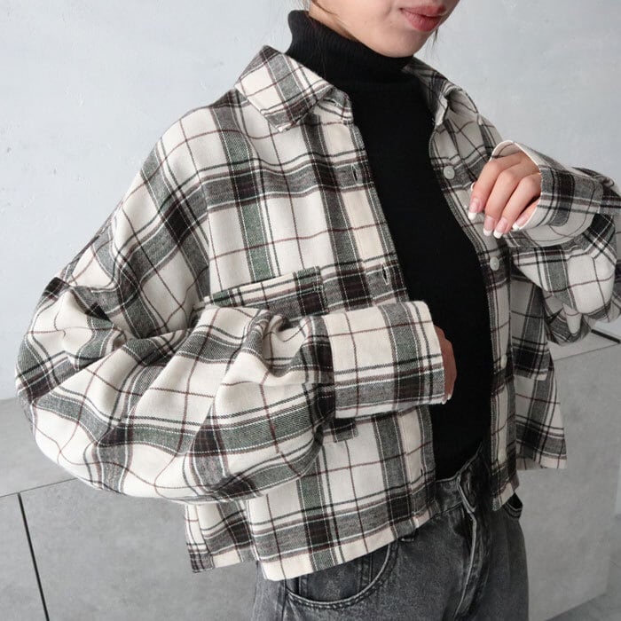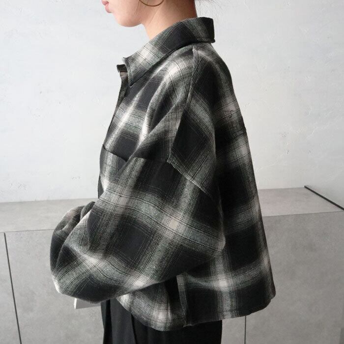 秋ムードを高めるチェック柄とショート丈がトレンド感たっぷりなチェックシャツ。 軽く起毛された素材は、とても柔らかで暖かく着心地抜群です。 また、絶妙なチェック柄がスタイリングのアクセントに。 ショート丈にゆったりとしたサイズ感なので、合わせるボトムを選ばず幅広いコーディネートを楽しんで頂けます。
