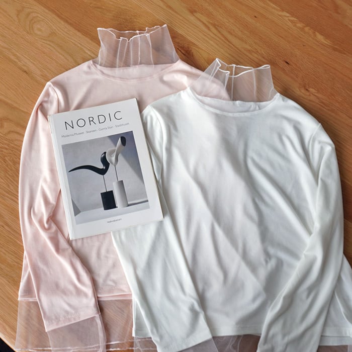 メローシアーの切替がポイントの女性らしいカットソー。 ややコンパクトなサイズ感ながらボディラインを拾い過ぎないので、華奢見え効果も◎