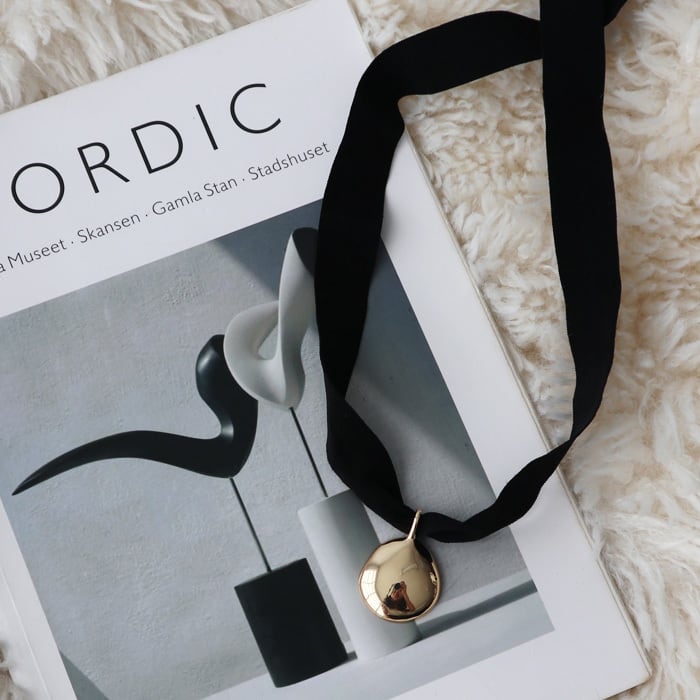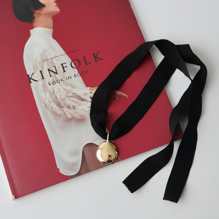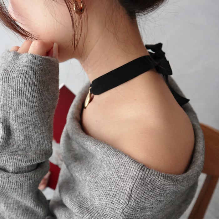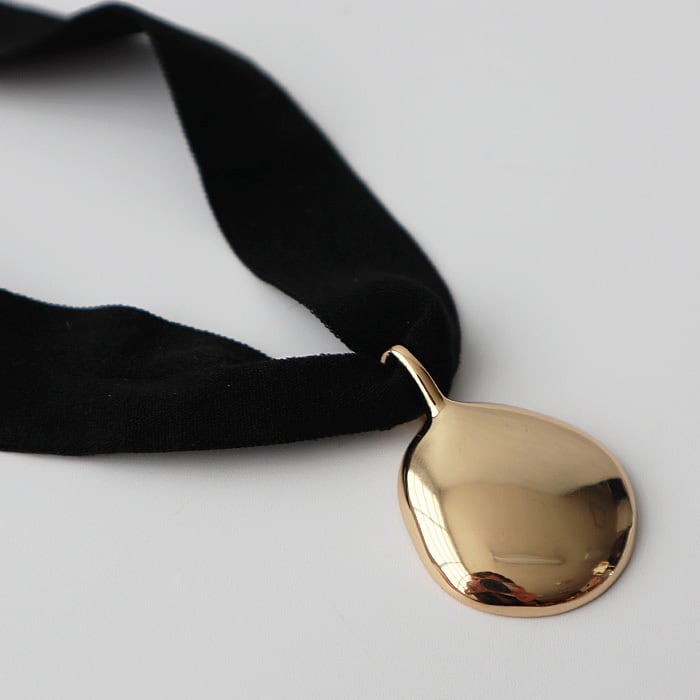 メダルトップが目を惹く今季注目のチョーカー。 大きめのモチーフと太めの伸縮性のあるリボンが魅力的で、 コーディネートに合わせるだけでトレンドライクでモードな印象に。 デイリー使いいただくのはもちろん、オケージョンシーンにもぴったりなアイテムです。