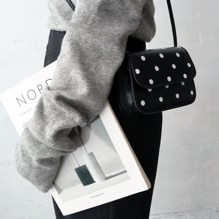 トレンドのドット柄が大人可愛いショルダーバッグ。 コンパクトなサイズ感で、アクセサリー感覚で取り入れられます。 マグネットで開閉が楽なのも嬉しいポイント◎ カジュアルスタイルからワンピースなどオケージョンシーンでも活用できる万能アイテムです。