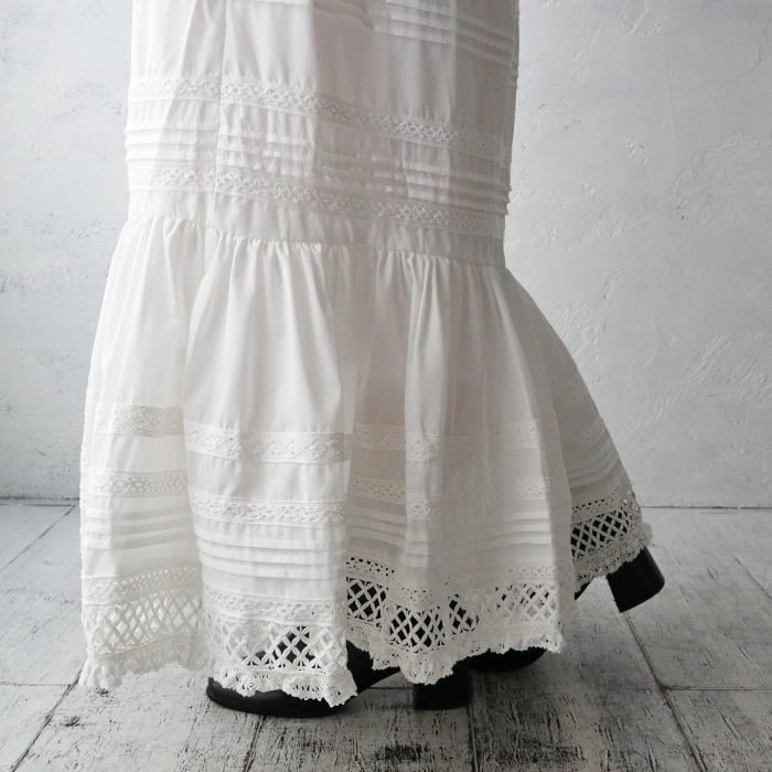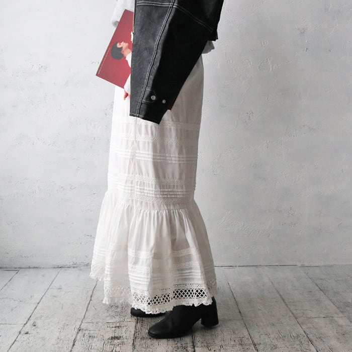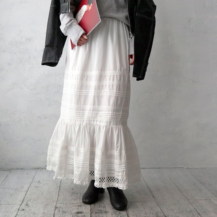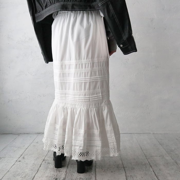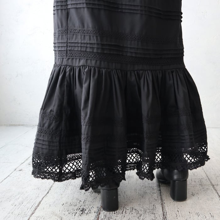 (Z45)テープリボンレース切替ティアードスカート