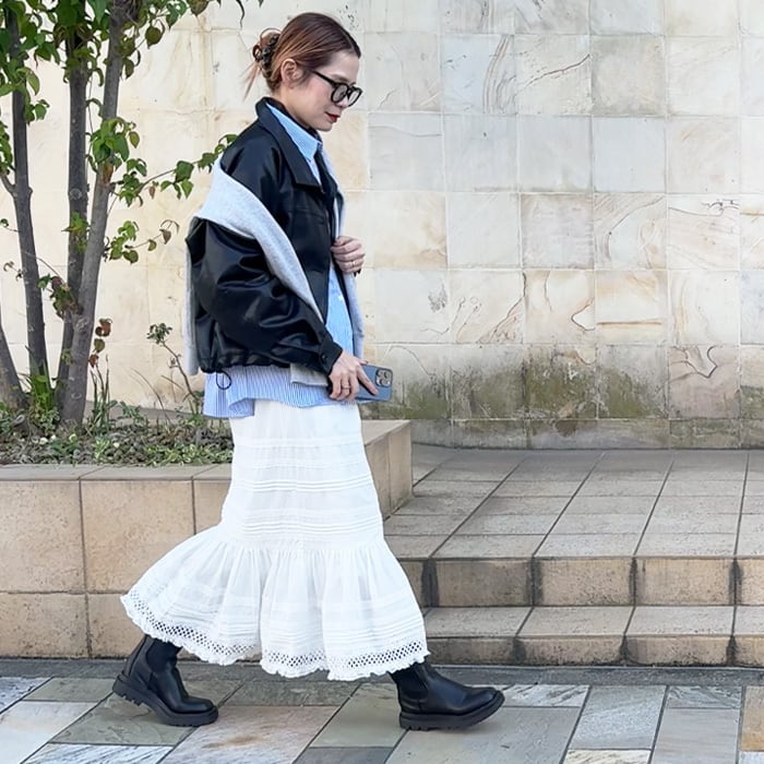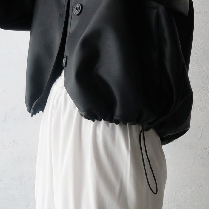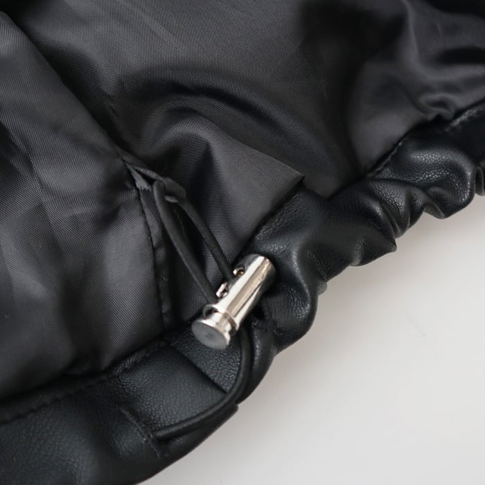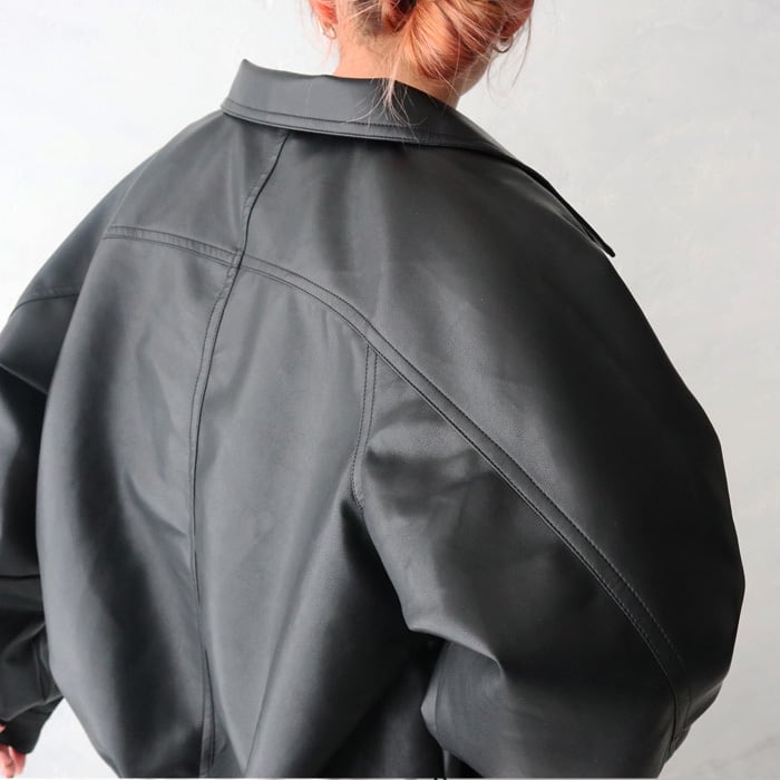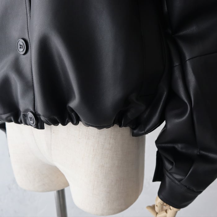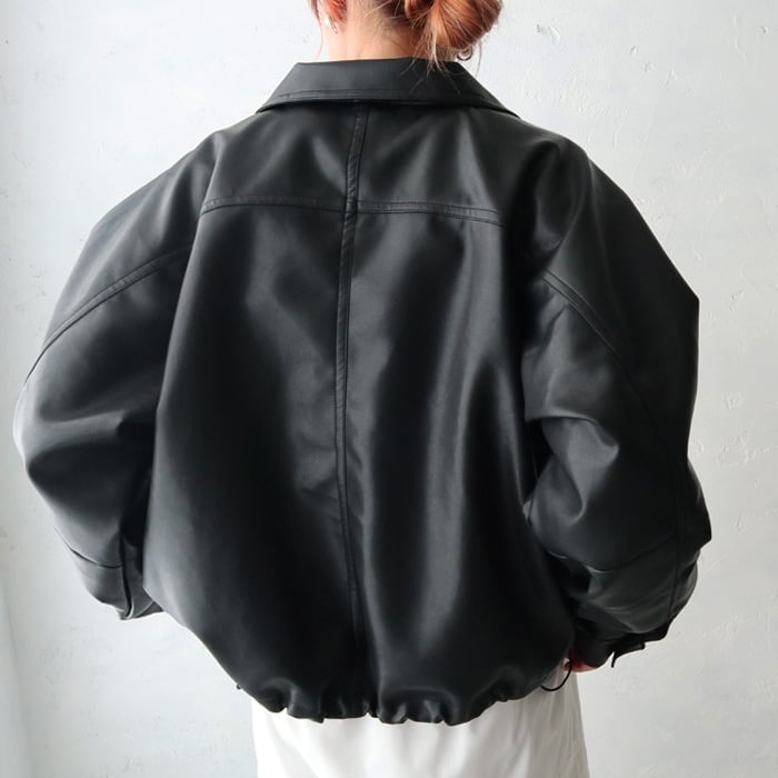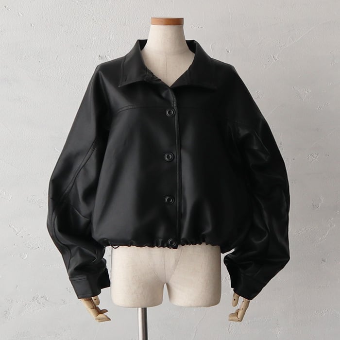バランスの取りやすい丈感が魅力のレザーライクジャケット。 高級感のある柔らかな質感が着心地抜群。 2WAY仕様の襟元と裾を絞れるドローコードでシルエットの変化も楽しめ、秋冬スタイルに重宝すること間違いなしです。