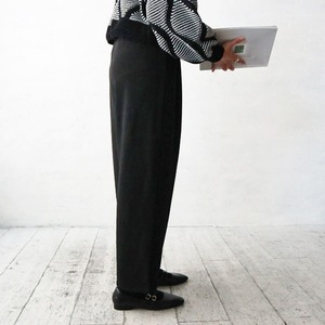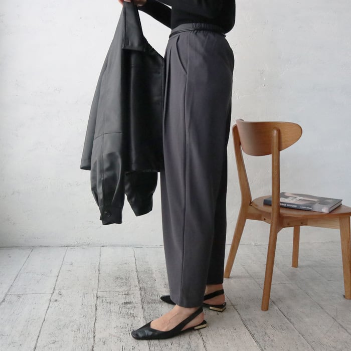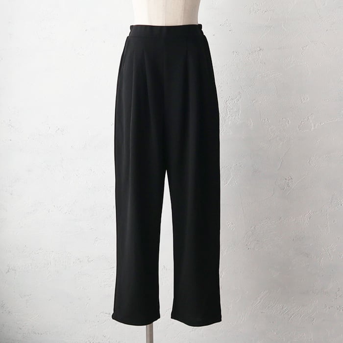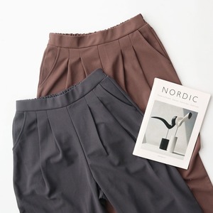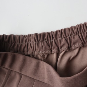 ジョーゼットの落ち感のある高見え素材が特徴的なスティックパンツ。 ウエスト部分はバックゴム仕様で、楽な履き心地ながらきちんと見えと脚長効果が叶います。 オンオフ使えてオールシーズン使える万能アイテムです。