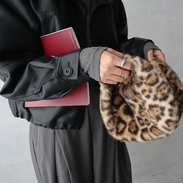 持つだけで暖かみのあるレオパードファーバッグ。