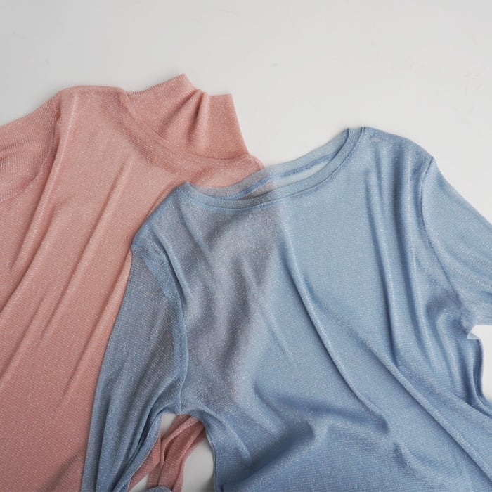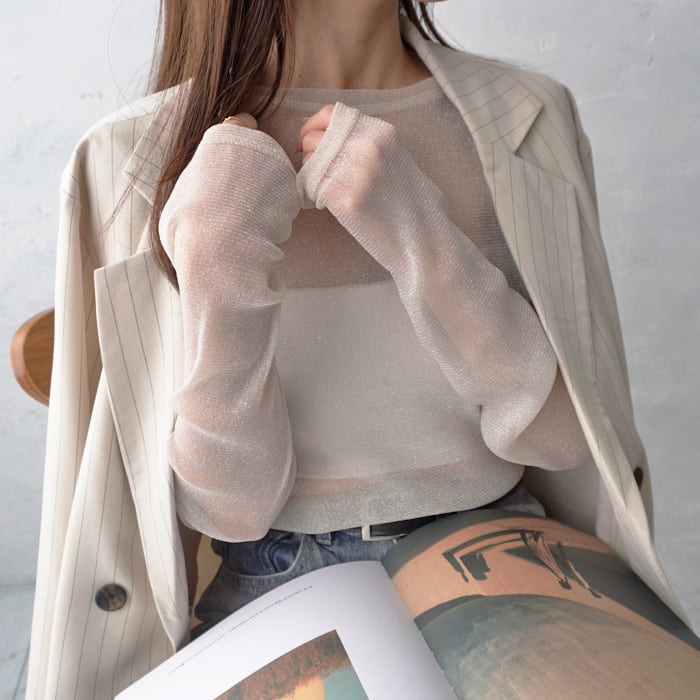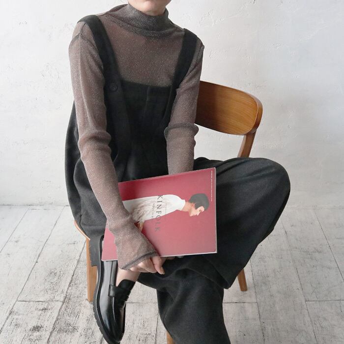 程よく透け感のあるラメシアー生地の女性らしいハイネックプルオーバー。 やや長めのロングスリーブと柔らかな質感、絶妙なサイズ感で 大人のレイヤードスタイルに取り入れやすいトレンドのカラー展開もポイントです。