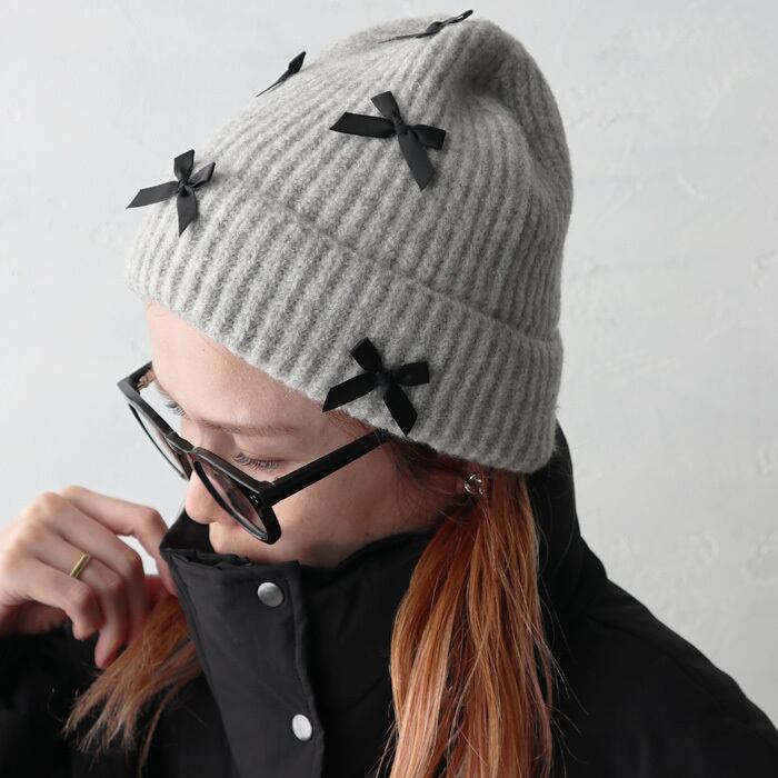 大人可愛いリボンが目を惹く、デザインニット帽が登場!