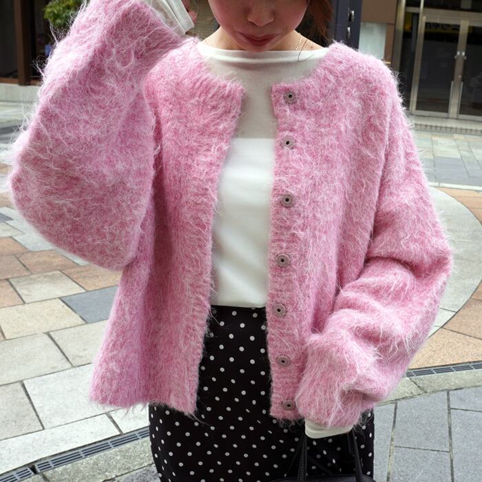 柔らかくソフトな肌触りと暖かみを感じるシャギーニットカーディガン。 ふわっとボリューミーな袖が華奢見え効果があり女性らしい印象に。 前後2WAYとカーディガンとしても着用できるマルチウェイ仕様で、 その日のコーデや気分に合わせてお楽しみ頂けます。 裏地:なし 伸縮性:あり 透け感:編目よりややあり ▼モデル身長158cm ▼サイズ詳細・平置き実寸 F/着丈54m/身幅59cm/肩幅64cm/袖丈46cm ▼素材 ポリエステル80%・ナイロン12%・毛7%・ポリウレタン1%