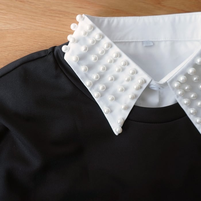 大人気の付け襟シリーズ。 シンプルな付け襟にフェイクパールがふんだんに施され、 オケージョンでも活躍してくれるアイテムです。 着ぶくれせずに気軽に取り入れやすく、 ブラウスのような被り仕様のため襟がズレずストレスなく着て頂けます。 ▼モデル身長167cm ▼サイズ詳細・平置き実寸 着丈:約30cm 身幅:35cm(サイドオープン・ゴムループあり) ▼素材 ポリエステル100%
