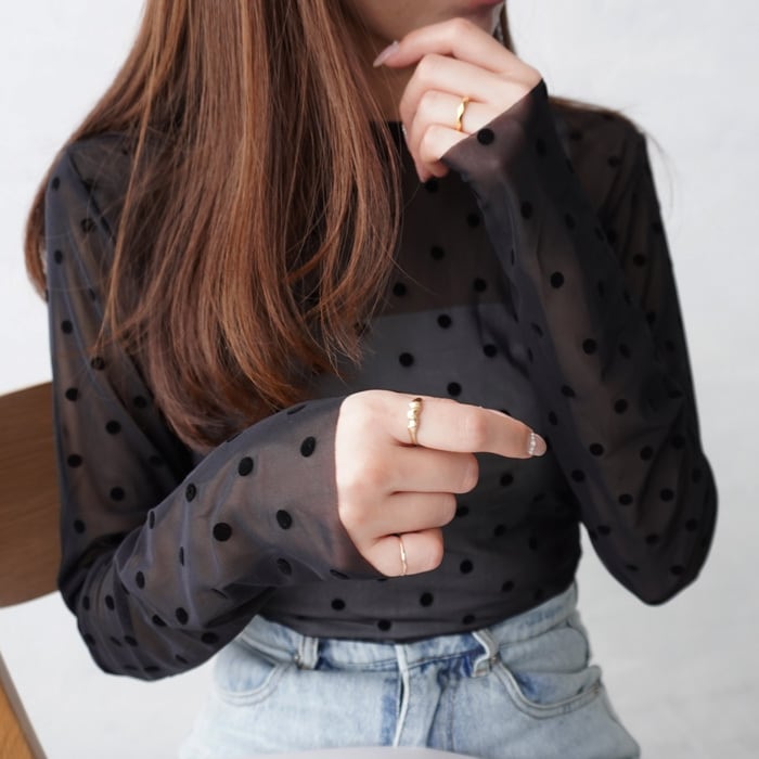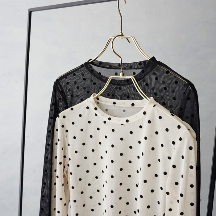 ドット部分は立体的なフロッキードットがアクセントになる1枚です