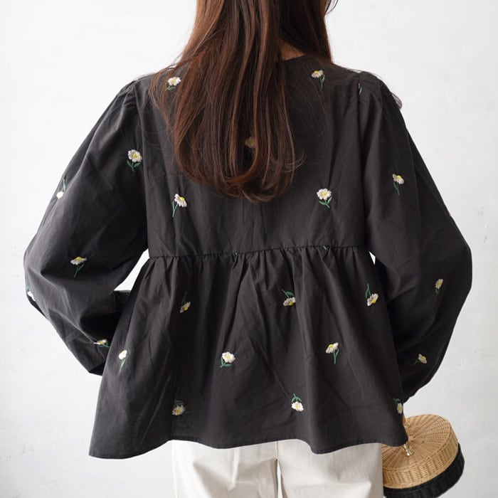 小花デザイン刺繍が可愛い1枚で着映えるブラウス。