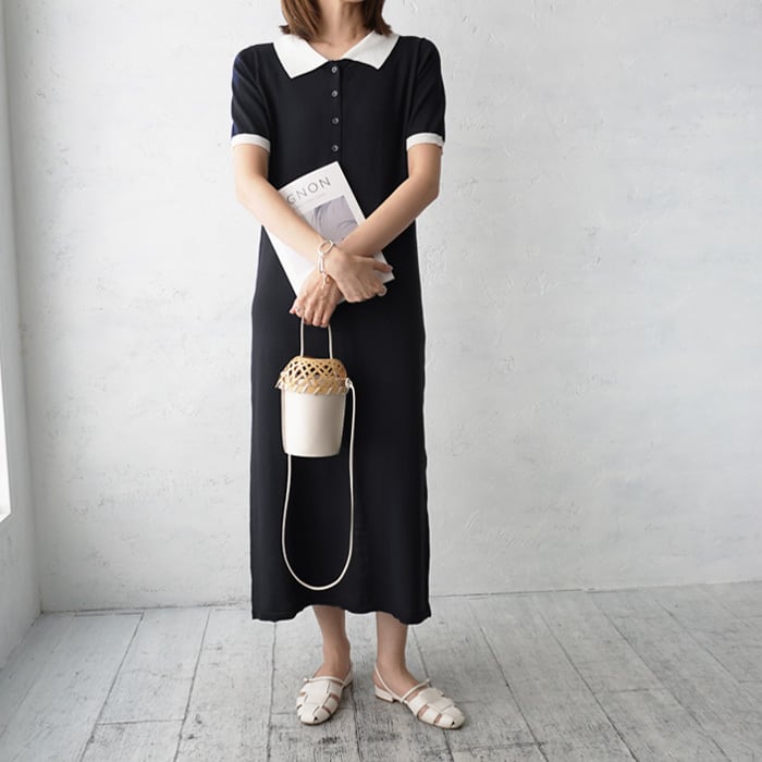 襟付きで綺麗見えしつつも柔らかなニットソー素材で