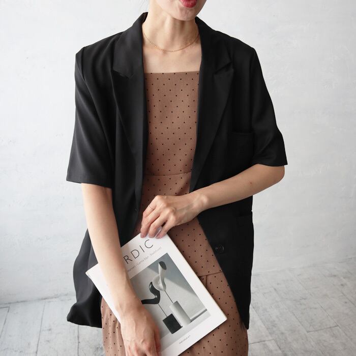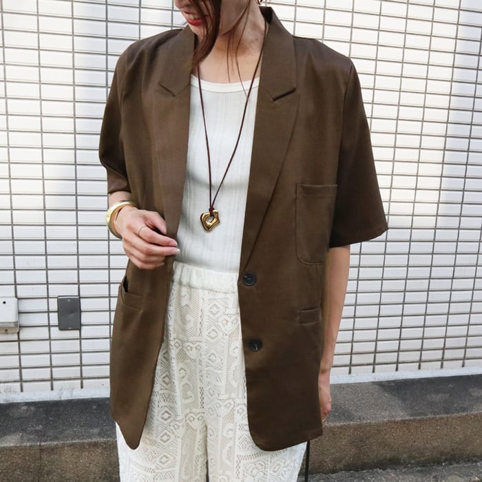大人の抜け感を演出するカラーリングが魅力のハーフスリーブテーラードジャケット。 柔らかな素材で二の腕カバーもできる、シャツ感覚でラフに羽織れる軽やかな一枚です。 オンオフどちらにも活躍し、きちんと見えも叶います。