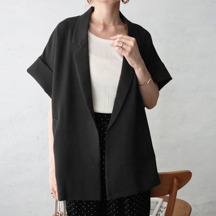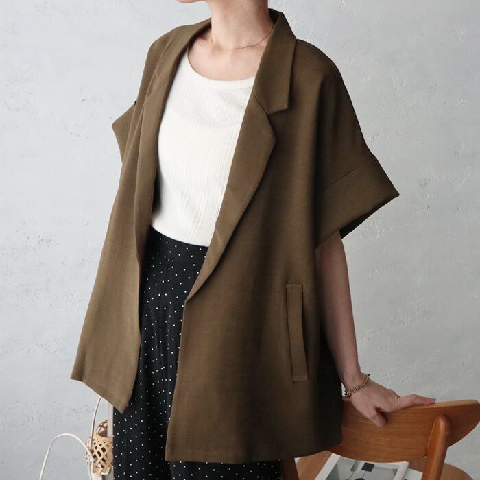 季節のつなぎ目に重宝するハーフスリーブジャケット。