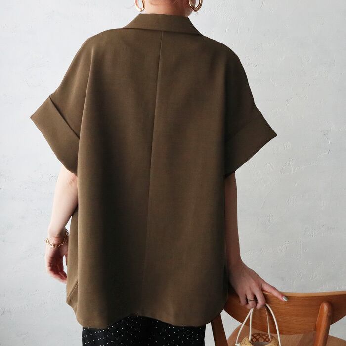 きちんと感も兼ね備え、羽織るるだけでこなれた雰囲気に仕上がります。 ゆったりとしたシルエットに、折り返しデザインの袖やドロップショルダーがリラックス感をプラス。 Tシャツやタンクトップの上からラフに重ねるだけで、スタイリングをワンランクアップしてくれます。 柔らかな素材で二の腕カバーもできる、シャツ感覚でラフに羽織れる軽やかな一枚です。 オンオフどちらにも活躍し、きちんと見えも叶います。