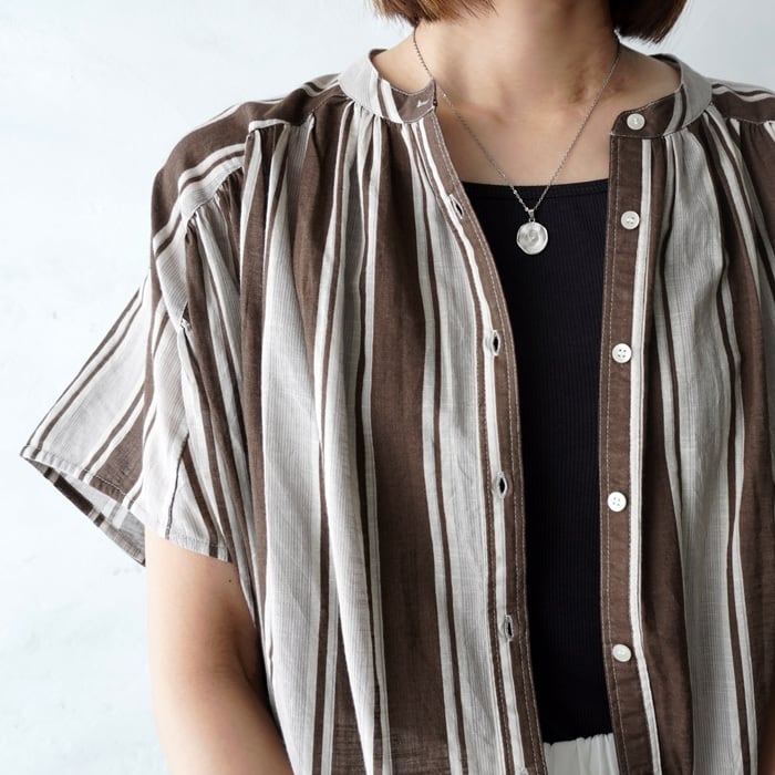 (W33)【4月下旬】インドコットンスラブストライプブラウス