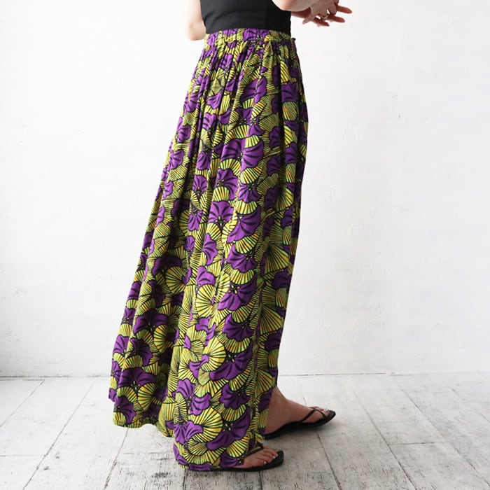 ヴィンテージエスニックな総柄が目を惹く、ナチュラルな風合いのマキシスカート。 シンプルなコーデに取り入れるだけでパッと華やかにオシャレ度アップ! インド製のとろみのある柔らかなレーヨン生地が肌当たりも良く、真夏でも涼しく着用していただけます。