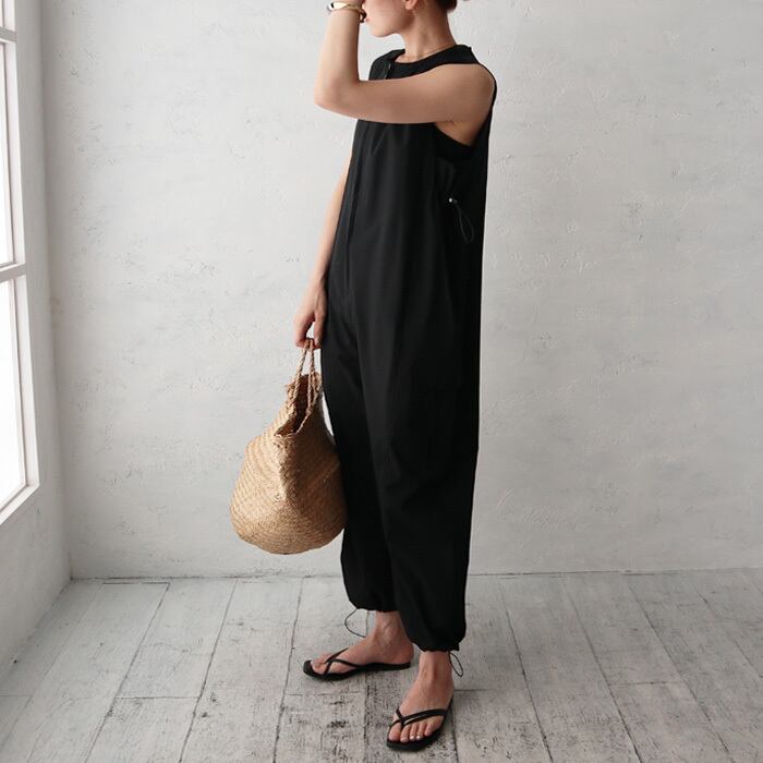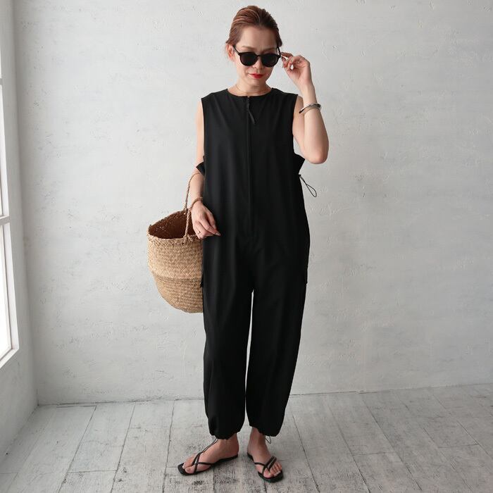 夏にぴったりな接触冷感・UVカット機能が付いたイージーケアのジップ付オールインワン。 軽やかなナイロン素材が着心地も良く、程よい抜け感を演出してくれます。 身頃と裾のドローコードでシルエット調整可能で、様々な着こなしが出来るのも◎
