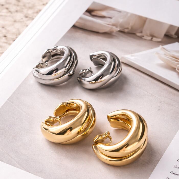 シンプルながらもやや大ぶりで程良いボリューム感のダブルフープイヤリング。 どんなコーデともマッチする定番のカラーリングでオンオフ活躍間違いなしの万能アクセです。 ▼モデル身長172cm ▼サイズ詳細・平置き実寸 全長3.5cm 横2cm ▼素材 メタル・合金 他の商品と注文された場合、遅い納期に合わせての発送となります。