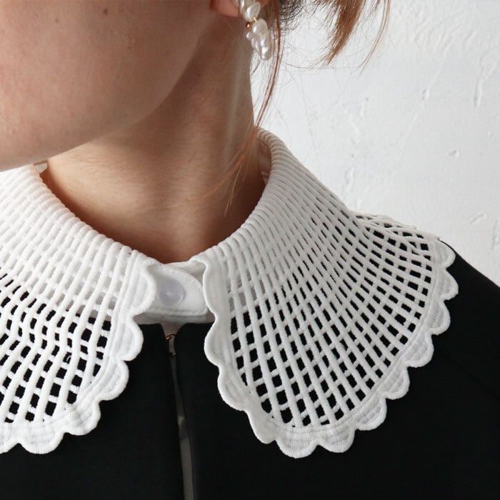 (Y)【4月中旬】格子編みスカラップホロアウト付け襟
