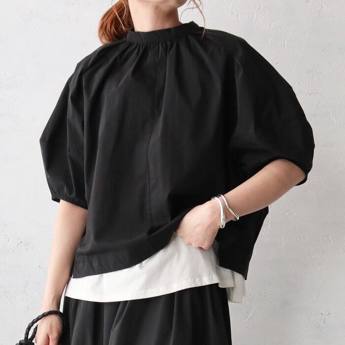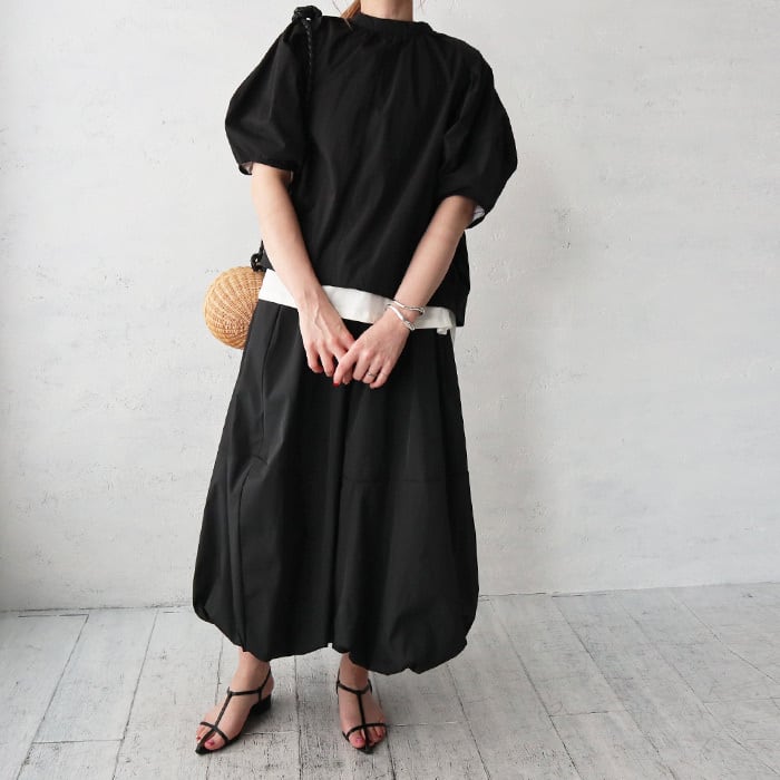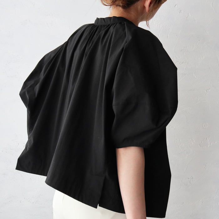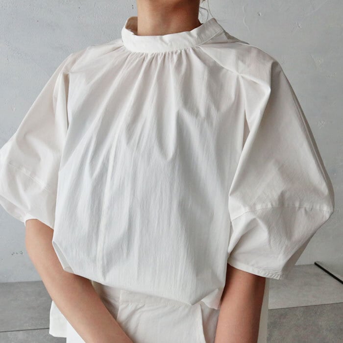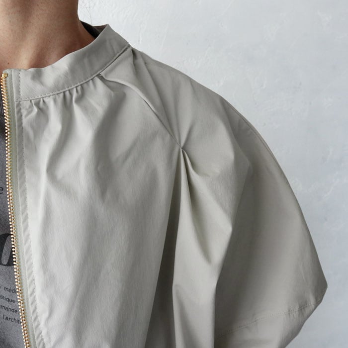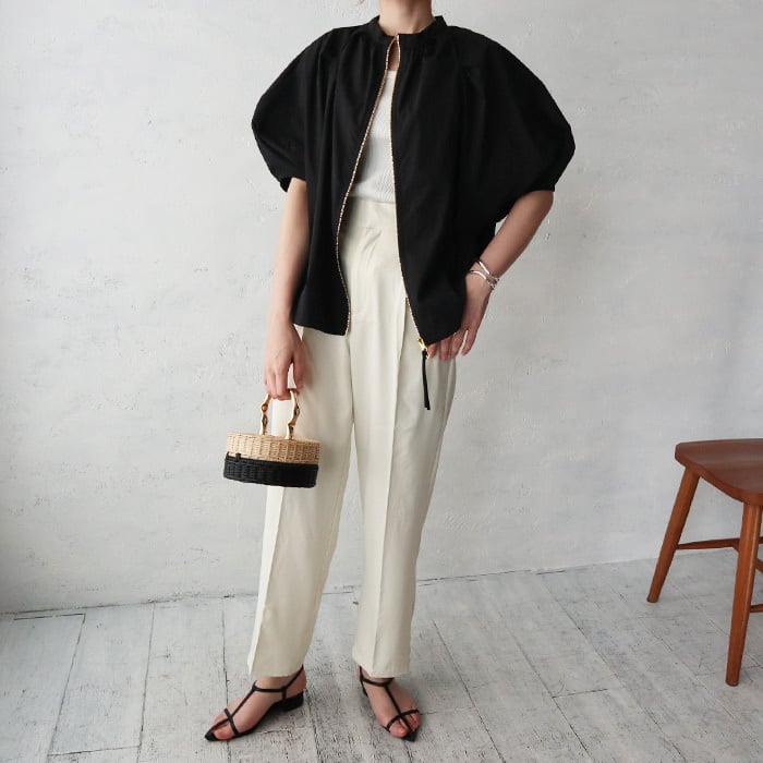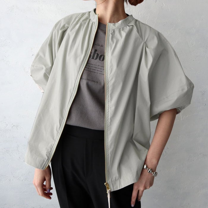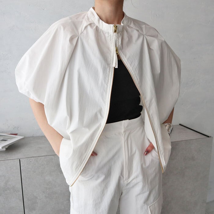 バルーンスリーブのような丸みのある袖にゴールドのジップがポイント。
