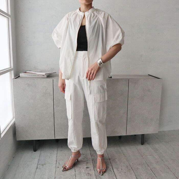 シャカシャカとしたハリ感のある生地でこれからの季節のライトアウターにもぴったりです。
