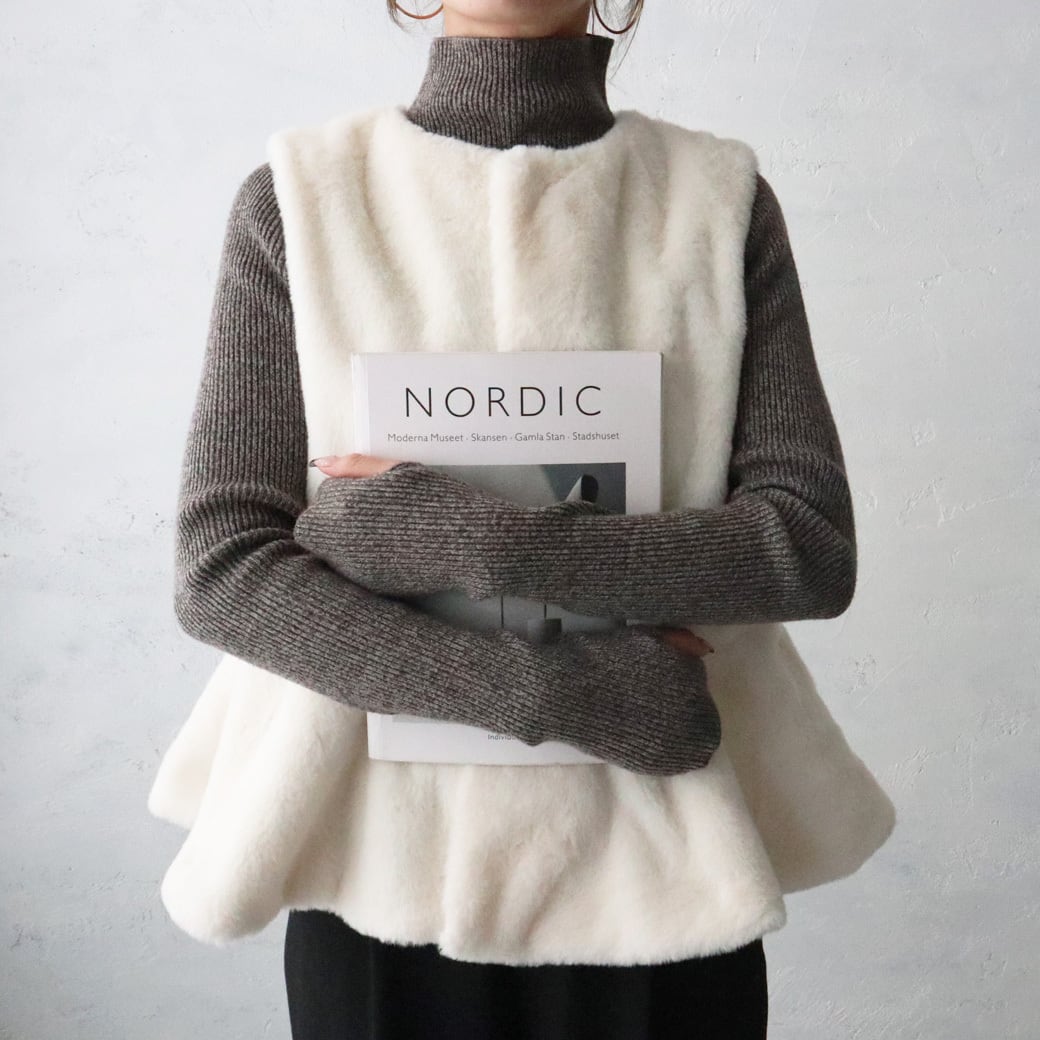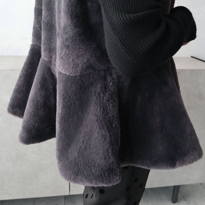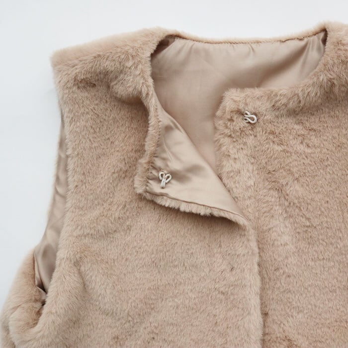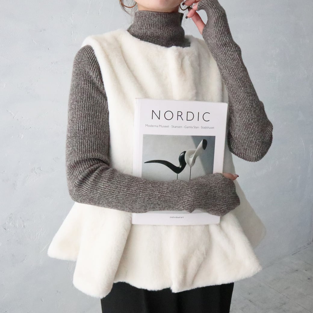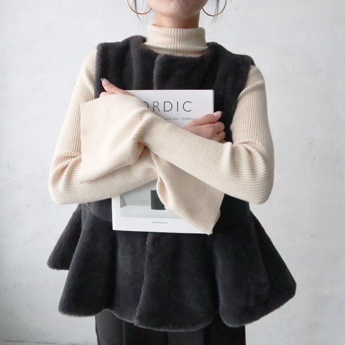 ファー×ペプラムのデザインがフェミニンな印象のベスト。 いつものコーディネートにプラスするだけでより可愛く、上品なスタイリングに。ボトムを選ばず着回しできます。 ふわふわのファー素材が高見え&肌触りも◎ フックボタン付きで、開閉スタイルどちらも楽しめます。 裏地あり・伸縮性なし・透け感なし・ポケットなし