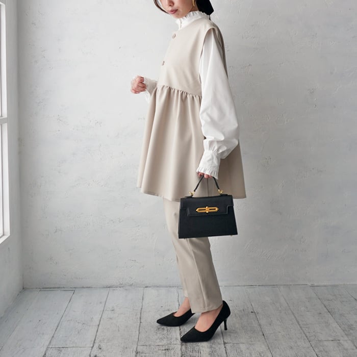 (B16)別売りパンツとセットアップOK/ペプラムギャザーベスト