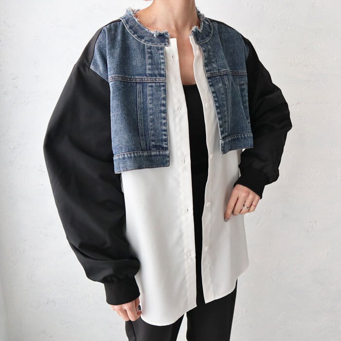 (CH)異素材ドッキングデニムブルゾンシャツ