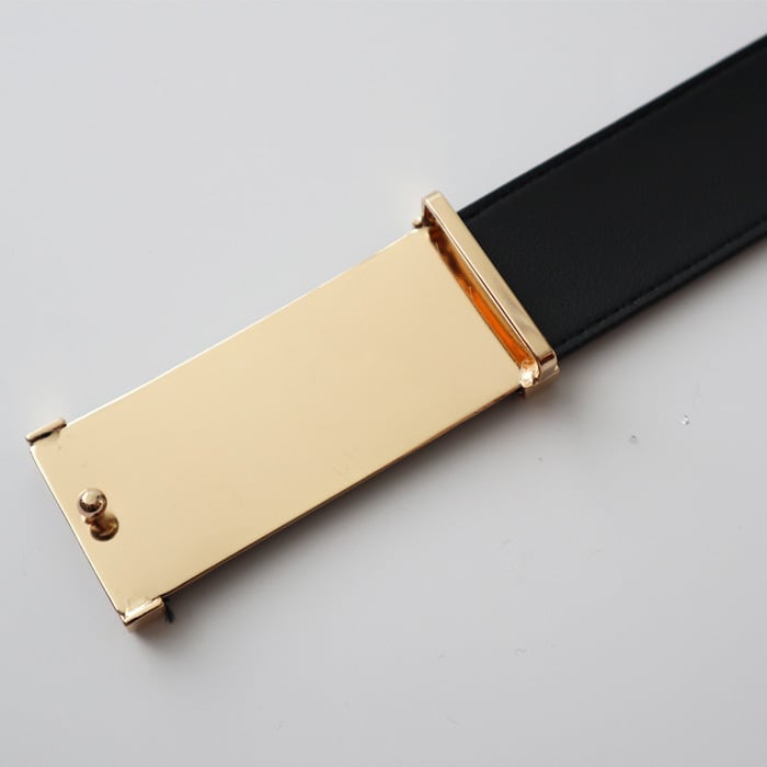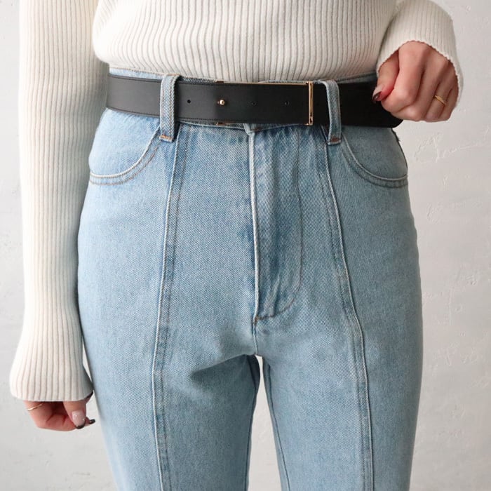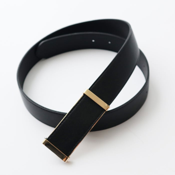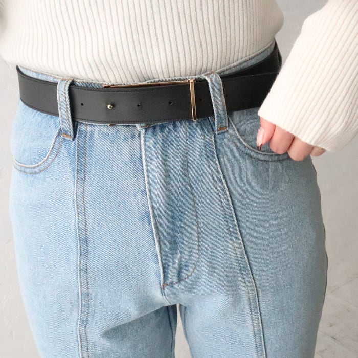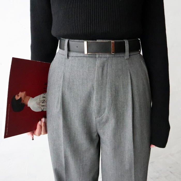 シンプルながらスクエアのゴールドバックルが目を惹く、今季らしいデザインのベルト。 リバーシブルで使用可能で、ワンタッチで簡単に着脱できるのも嬉しいポイント◎