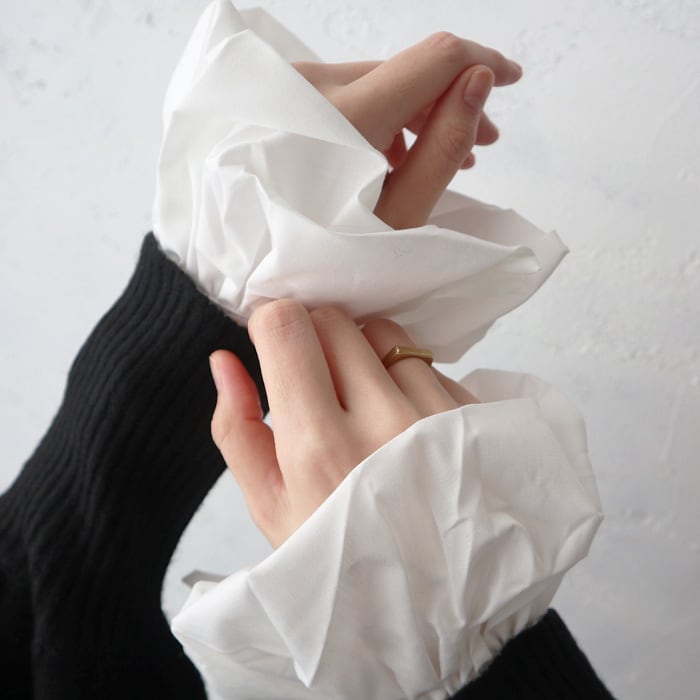 お手持ちのお洋服に付けれる人気の付け袖。 いつものコーデにプラスするだけでフェミニンからモードまで幅広く楽しめるバルーンデザインです。 釦で2段階の調整が可能。 裏地なし・伸縮性なし・透け感ややあり
