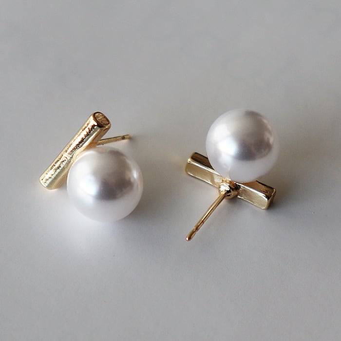 シンプルなゴールドライン×一粒パールのピアス。 パールの上品なツヤ感と、華奢なゴールドラインが女性らしく華やかな印象に。 デイリーからオケージョンまで幅広いシーンで大活躍間違いなしのアイテムです。