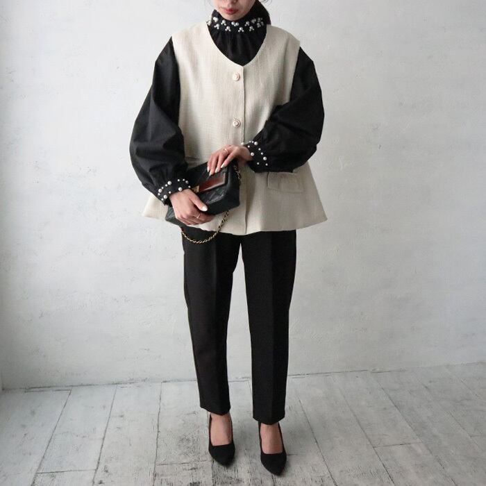▼着用アイテム/モデル身長158cm(アイボリー)・172cm(ブラック)