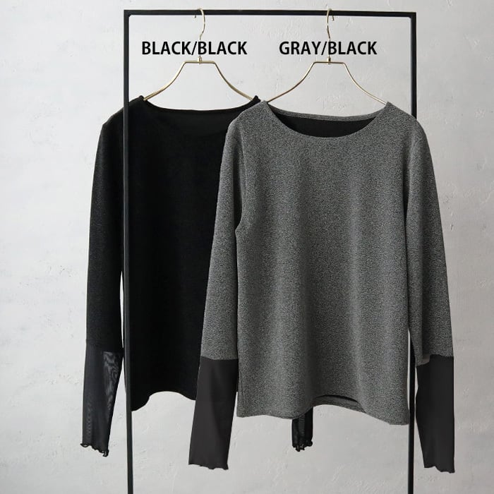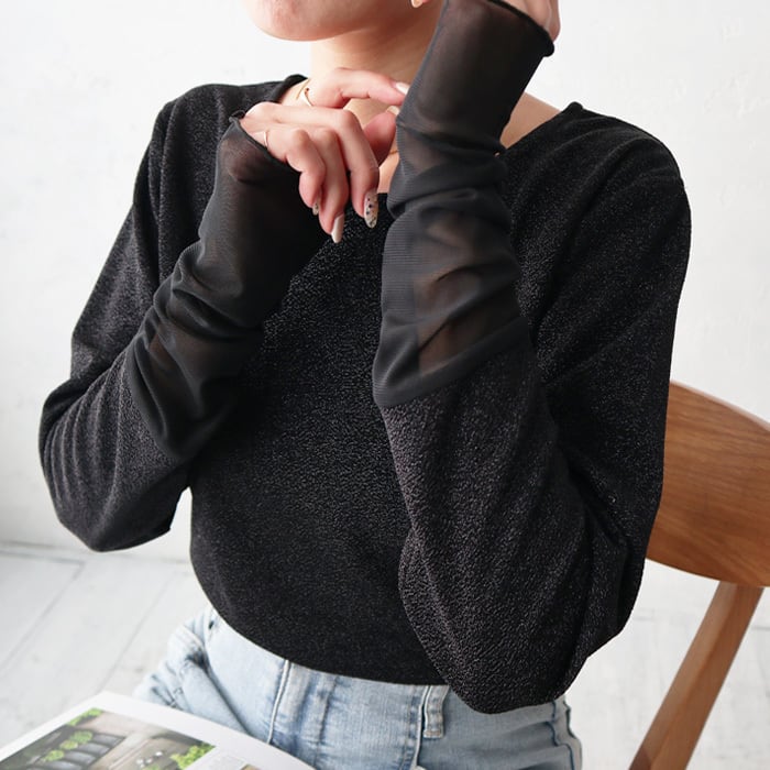 (ST28)フリルシアー袖ラメカットソー